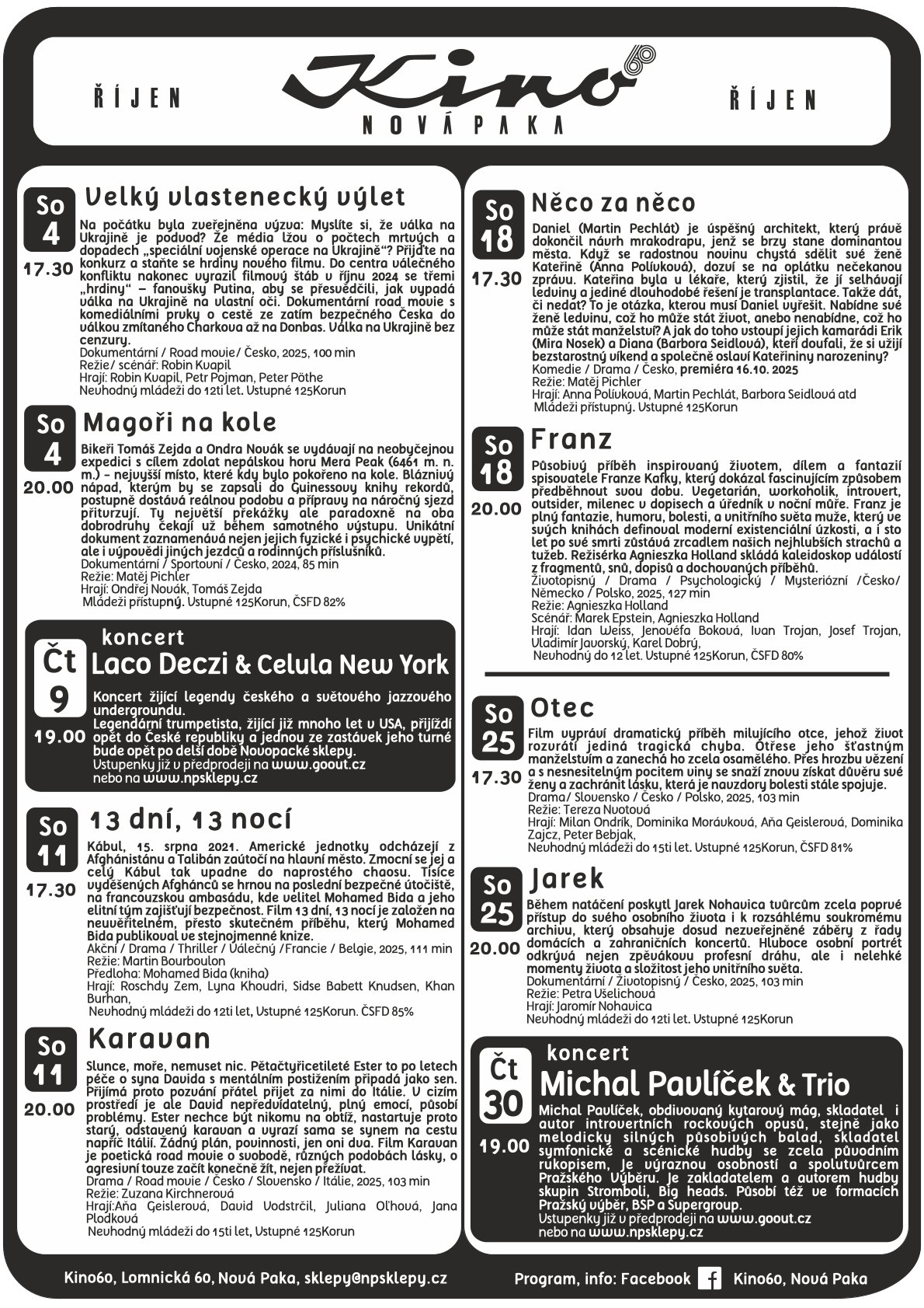 - Kino - program našeho kina a dalších kulturních akcí novopackých sklepů