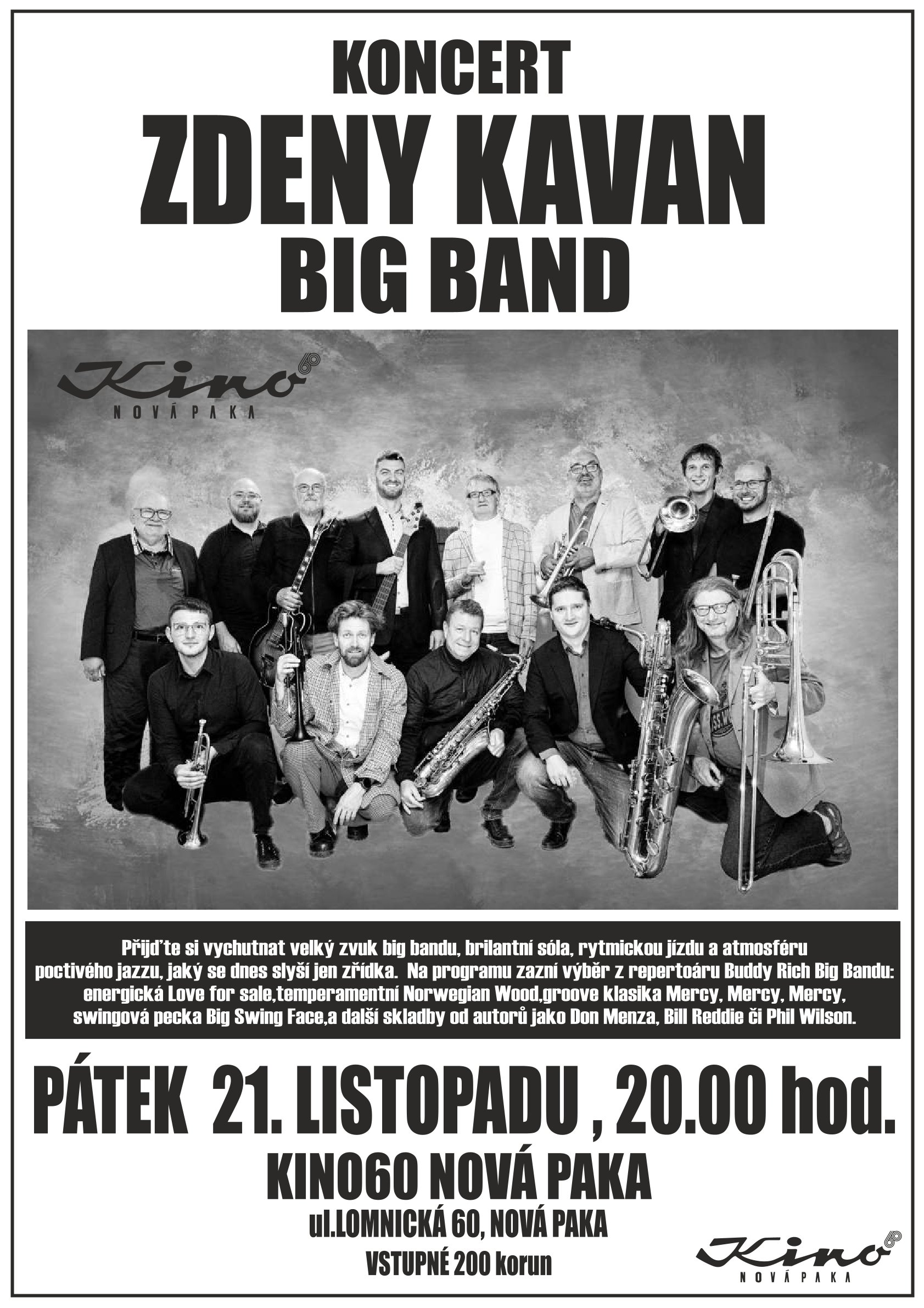 21.listopadu Zdeny Kavan Big Band od 20 hod. v novopackém kině, vstupné 200 Korun